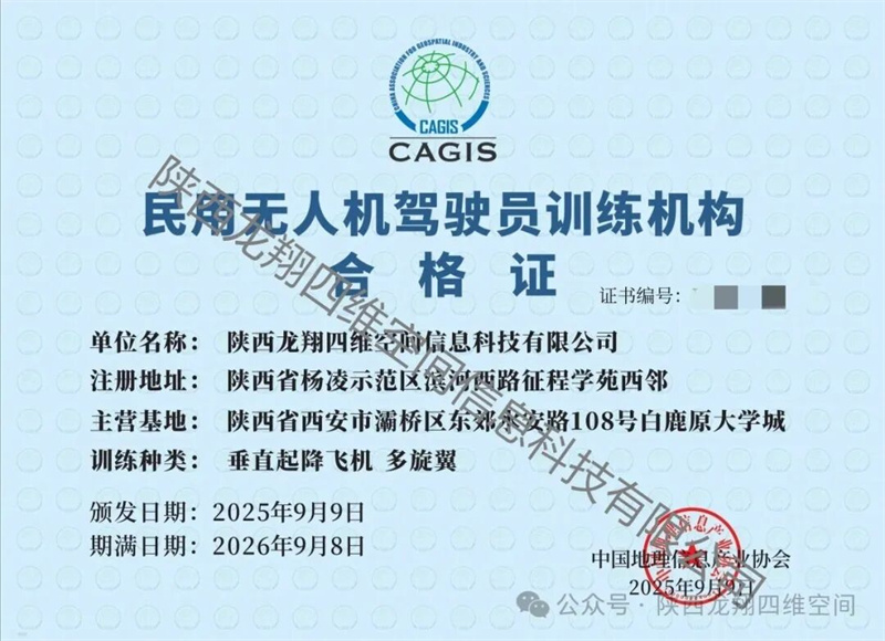 days 09 /12 熱烈祝賀陜西龍翔四維空間信息科技有限公司成功取得民用無人機駕駛員訓練機構(gòu)合格證! 恭喜陜西龍翔四維空間信息科技有限公司斬獲民用無人機駕駛員訓練機構(gòu)合格證!這是專業(yè)實力的硬核認證,也是信任的基石,愿以此為起……